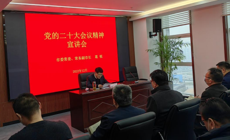 12月8日下午,蚌埠市委常委、常務(wù)副市長(zhǎng)葛銳到集團(tuán)宣講黨的二十大精神。集團(tuán)黨委書(shū)記、董事長(zhǎng)陳建功主持會(huì)議,集團(tuán)總部領(lǐng)導(dǎo)班子和中層管理人員,交投集團(tuán)、水投公司、城開(kāi)公司、建院集團(tuán)、排水公司、糧食系統(tǒng)及汽運(yùn)集團(tuán)領(lǐng)導(dǎo)班子成員參加會(huì)議。
