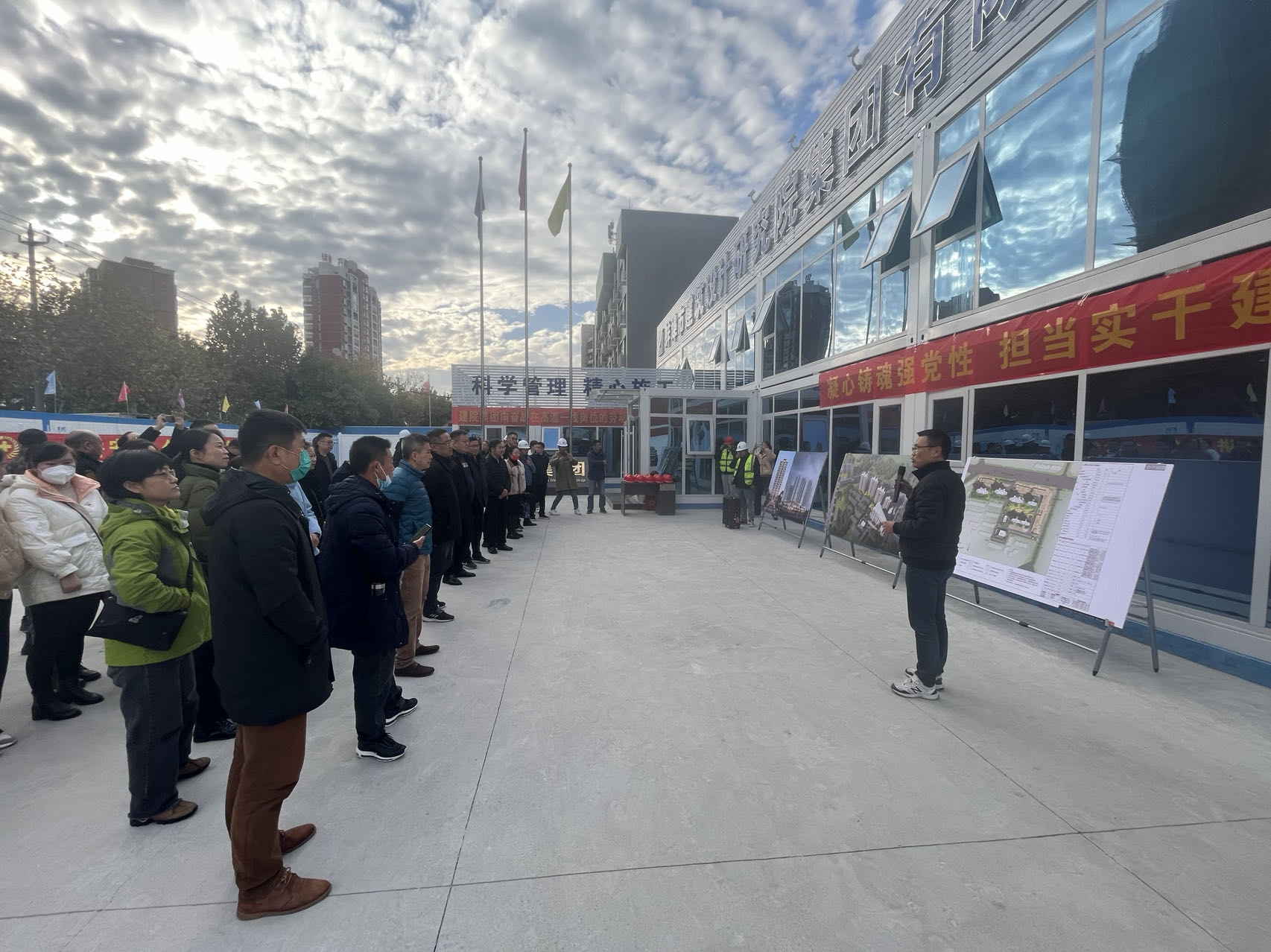 11月13日,集團(tuán)黨委組織集團(tuán)機(jī)關(guān)黨支部全體黨員、建院集團(tuán)、糧食集團(tuán)、城開(kāi)公司基層黨組織成員至蚌埠市建筑設(shè)計(jì)研究院集團(tuán)有限公司開(kāi)發(fā)代建的固鎮(zhèn)縣保障房項(xiàng)目——建院·古原名邸項(xiàng)目現(xiàn)場(chǎng)參觀。