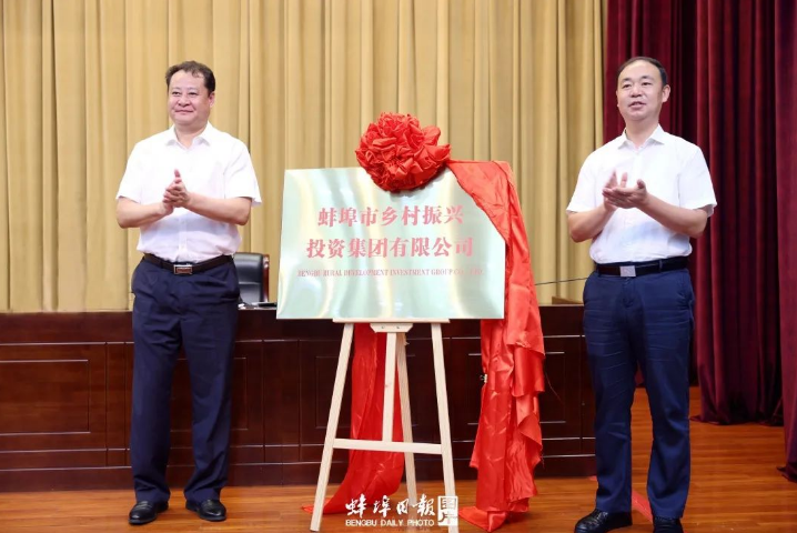 會(huì)上,市委副書記、懷遠(yuǎn)縣委書記王慶武,副市長吳永彬共同為蚌埠市鄉(xiāng)村振興投資集團(tuán)有限公司揭牌。