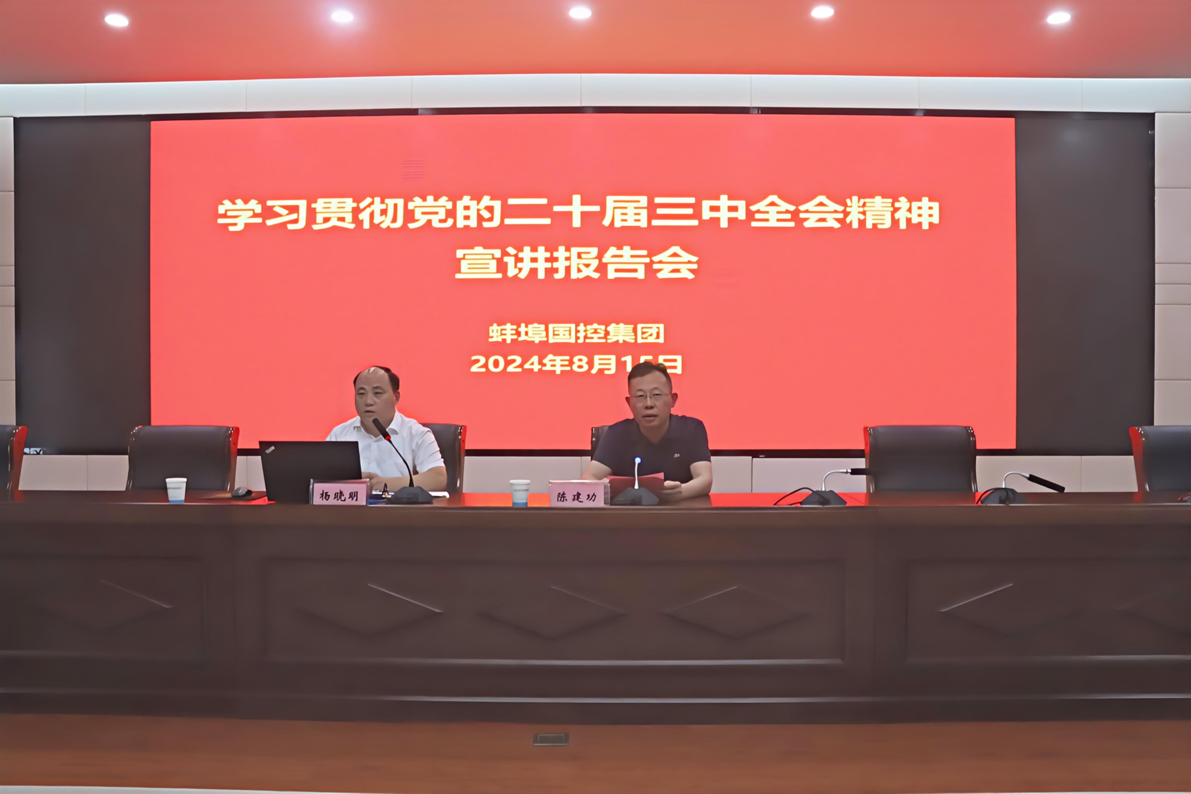 為認(rèn)真學(xué)習(xí)宣傳貫徹黨的二十屆三中全會(huì)精神,推動(dòng)落實(shí)國(guó)有企業(yè)改革發(fā)展新任務(wù)新要求,8月15日下午,市國(guó)控集團(tuán)舉辦學(xué)習(xí)貫徹黨的二十屆三中全會(huì)精神宣講報(bào)告會(huì),會(huì)議邀請(qǐng)市委副秘書(shū)長(zhǎng)、市委政研室主任楊曉明作主題宣講,集團(tuán)黨委書(shū)記、董事長(zhǎng)陳建功主持會(huì)議并講話。集團(tuán)領(lǐng)導(dǎo)班子成員、部門(mén)負(fù)責(zé)人,所屬子公司領(lǐng)導(dǎo)班子成員和基層黨組織書(shū)記代表共計(jì)88人參加會(huì)議。