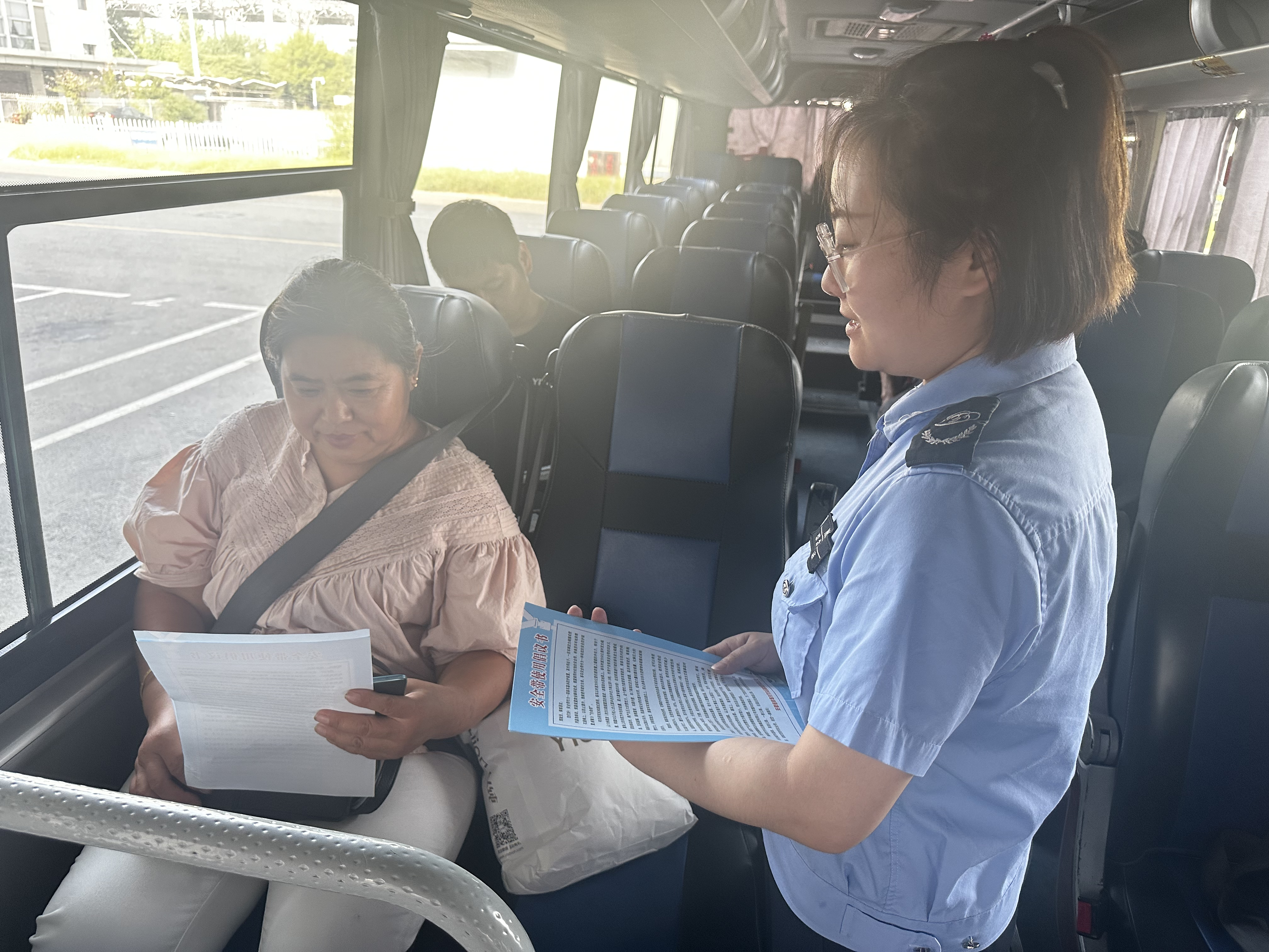 行管工作團(tuán)隊(duì)通過售票廳、進(jìn)站檢票口電子屏幕播放“規(guī)范系好安全帶”,并向旅客發(fā)放倡議書進(jìn)行安全提醒;檢票工作人員在檢票核驗(yàn)時(shí)做好逐人“注意出行安全,乘車系好安全帶”提示勸導(dǎo);車輛行至出站口時(shí),稽保人員逐車檢查安全帶是否規(guī)范使用,并對(duì)沒有正確使用安全帶的旅客進(jìn)行再勸導(dǎo),確保安全、規(guī)范、文明行車,切實(shí)保障旅客生命及出行安全。